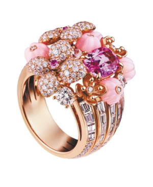 绣球花是约瑟芬皇后——拿破仑妻子的挚爱,这位CHAUMET灵感缪斯女神对女儿的爱称也源于此番情有独钟。年初“法兰西玫瑰”苏菲·玛索佩戴Hortensia系列在央视春晚献曲,绣球花首次展现于中国民众视野,而今夏,绣球花便真实地呈现在我们面前。绣球花以无限变化的形态著称,由花冠至花蕊,CHAUMET以绣球花来彰显品牌始终善于把自然主义转化成为珠宝系列的风格,悉心考究花朵特性,以大胆几何线条及十种不同变化的花瓣形态来演绎情感,永恒的爱在纤巧锦簇的圆形或长条花瓣间恣意流转。费时耗力精雕细琢而成的绣球花,随着糅合了不同强度和优雅的姿态而诞生。