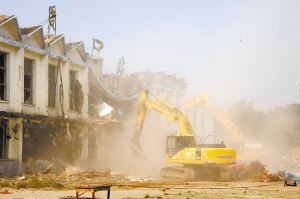 2014年8月3日上午8时,周口老火车站候车室被彻底拆除。漯周铁路周口站建于1975年2月,采用当年韶山火车站的图纸设计。岳献甫 摄