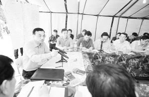 中共中央政治局常委、国务院总理李克强在云南鲁甸地震震中龙头山镇实地察看灾情后,来到镇中学操场上的帐篷里,召开现场会,协调解决抗震救灾中的问题。会议开始时,李克强和参加会议的全体同志向此次地震中的不幸遇难者默哀。