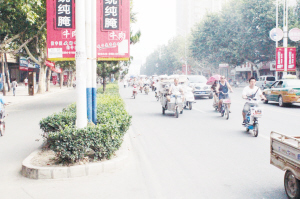 8月5日7时30分,中州大道北段,正值上班高峰。不少电动车不走非机动车道而是和轿车“争路”,中州大道由北向南行驶车流的西半部被电动车占据,轿车被迫在电动车流中缓慢行驶。