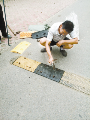 8月6日10时许,记者在滨河路上看到,几名维修工人正在修复受损减速带。说起减速带损坏的原因,一位维修工人表示,不少车辆路过此地时不提前减速,而是行驶到距离减速带很近的地方才减速,然后又突然加速,导致减速带承受巨大的冲击力,这是减速带受损的主要原因。最好的方法是遇到减速带时要提前减速,慢慢匀速驶过。