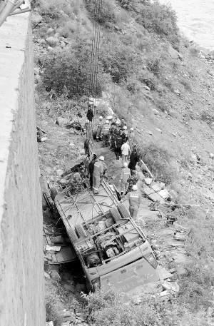 在救援现场,由武警、公安消防、医务等人员组成的救援队伍携带救援设备,第一时间赶到事故现场奋力抢险救人。但是,由于载人最多的大巴车翻落在陡崖下、雅鲁藏布江边,地形复杂,救援难度很大。