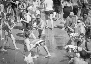 8月9日, 人们在加拿大温哥华史丹利公园参加水枪大战。