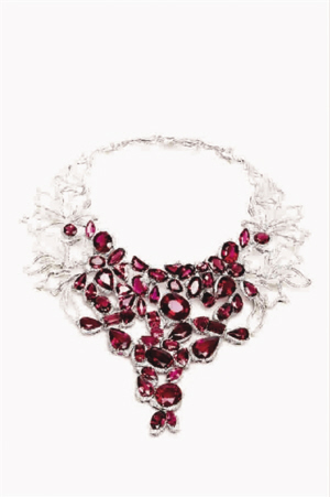 专为巴黎高级订制时装周特别订制的价值千万元绝美红碧玺项链,银色的树叶搭配碧玺组成的花团锦簇,格外别致艳丽。有“人间彩虹”之称的碧玺向来以色彩艳丽丰富而著称,然而从品质来说,红色的碧玺却最为珍贵,而通体由红色碧玺打造而成的项链就显得更加难得。虽然价格高昂,却可从中发现今季彩宝的流行所向,作为礼物参考。