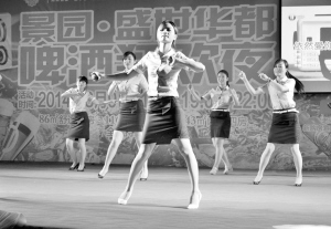 8月10日,景园盛世华都啤酒狂欢夜盛大开启,五六百位业主和意向客户、围观的市民一起听歌、畅饮,精彩的节目、动感的音乐伴大家度过了一个欢乐的夜晚。据悉,登台唱歌获奖的业主还能获得一年的物业费,获奖的意向客户购房享受5000元的优惠大奖。图为该项目销售部的员工登台表演。王永剑 摄
