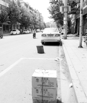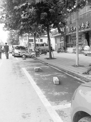 本报讯 近日,不少市民拨打本报新闻热线称,在周口市区一些路段的停车位上,有人放置一些障碍物阻挡市民停车,很让人生气。