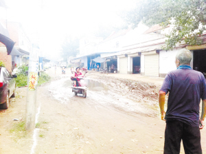 当日上午,记者在许湾乡C958线程寺大街(程寺——熊楼)改造工程的开工现场看到,原来的道路为砖铺路,坑坑洼洼,有的地方布满泥泞,积水严重(如图),给附近群众出行造成极大不便。这条路的两侧还有一所中学和一所小学,每逢雨雪天气,学生出行安全更是令人担忧。