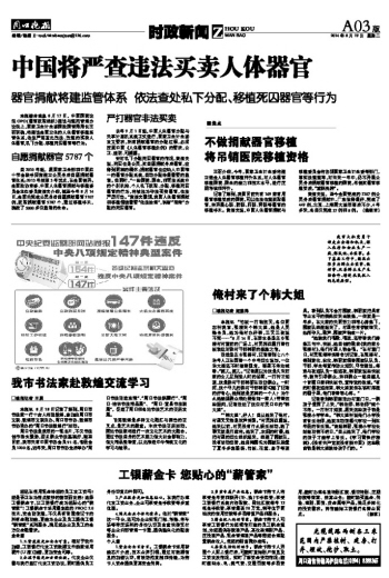 中国将严查违法买卖人体器官
