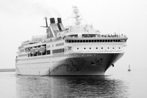 8月20日,我国第一艘全资自营的豪华邮轮“中华泰山”号载着900多名乘客,经过5天4夜的行程,完成驶往韩国的“处女航”,返回山东烟台港。“中华泰山”号邮轮隶属于渤海邮轮有限公司,船舶总长180.45米,型宽25.5米,总吨位2.45万吨,各种配套设施完善,可满足乘客多种生活和娱乐需求。新华社发