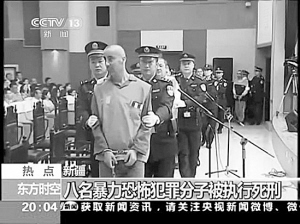 近日,经最高人民法院核准,乌鲁木齐、阿克苏、喀什、和田四地(市)中级人民法院依法对犯有组织、领导、参加恐怖组织罪,故意杀人罪、放火罪,非法制造、储存、运输爆炸物罪,以危险方法危害公共安全罪的玉山江·吾许尔、玉苏甫·吾买尔尼亚孜、玉苏普·艾合麦提等5案8名罪犯执行死刑。