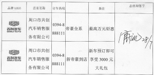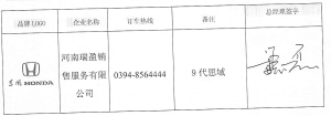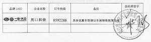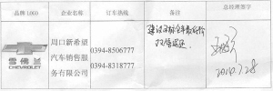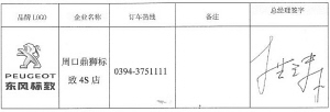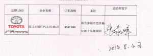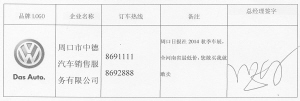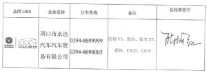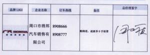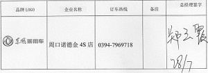品牌LOGO 企业名称 订车热线 备注 总经理签字