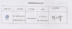 ——2014秋季周口大型车展参展商家(部分)优惠承诺书