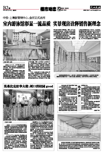 记者在中悦·上尊新营销中心看到,装饰一新的售楼部风格融合了中悦·上尊项目的整体特色,奢华气派的建筑装饰塑造出高贵典雅的欧式贵族风情。训练有素、穿着得体、笑容满面的置业顾问耐心了解购房者的诉求,并为购房者推荐最适合居住需求和经济水平的房源。同时,为了回馈广大市民对中悦·上尊项目的关心和支持,位于中悦·上尊豪华会所——上尊会一楼的周口首家超大室内恒温社区游泳馆也于本周二正式对外开放。爱游泳、爱运动、注重生活品质的市民届时可凭借免费体验券到水中感受畅游的乐趣。
