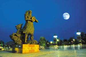 伴随着轻快的节奏,上百市民一起跳着广场舞,这是现在城市夜生活中司空见惯的一幕。而这个夏末的傍晚,在泗水伏羲公园,在手捧八卦、俯视众生的伏羲塑像前出现的这一幕,却给我们留下了深刻的印象。我们架好照相机,在公园一角席地而坐,静静地看着,用心感受着人们在追求美好生活的道路上迈出的幸福舞步。柔和的灯光下,欢乐的身影,开心的笑脸,无忧的生活,这画面看上去是如此的和谐,又如此的令人感慨。几千年来,从伏羲时代结束人类茹毛饮血的生活开始,我们的先民就在不断地开拓进取中走向文明。这种“生活幸福、社会和谐”的画面,也一定是当年我们的先民所梦想的。