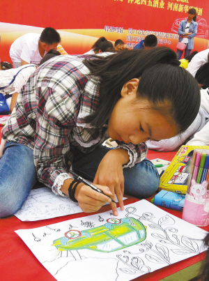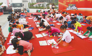 10时30分许,一些富有绘画功底和创造力的小记者陆续完成了绘画,在红色衬底的长卷中留下自己心目中的汽车形象,或写实、或虚幻,整幅画卷妙趣横生,大人们都啧啧称奇。