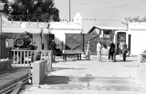 8月31日,在利比亚首都的黎波里美国大使馆,几名民兵在大使馆门口站岗。