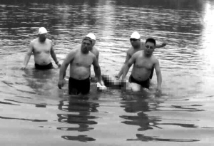 无奈之下,村民梁金堂拨通了鹿邑县冬泳协会会长鲁华杰的手机。闻讯,正在吃饭的鲁华杰立即撂下饭碗,火速集合其他7名队员,开着私家车来到出事地点。到达现场后,队员们二话不说穿上泳衣,立即下水摸人。由于出事地点不准确,加上时间已久,8名队员分组,在水坑内排查。“地形太复杂,一会儿深,一会儿浅,给打捞带来一定难度,我鼓励队员,用潜泳技术,耐心查找。”鲁华杰说,半小时后有队员摸到了一名少年的遗体。