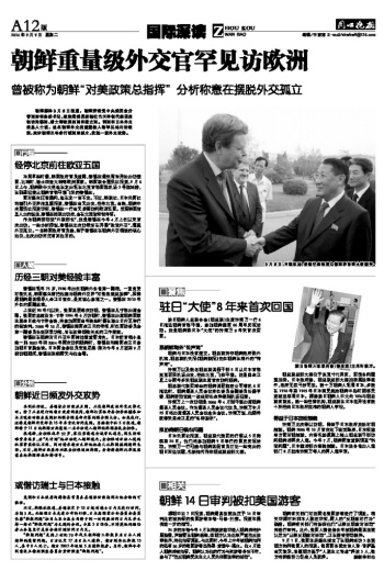 朝鲜媒体9月6日报道,朝鲜劳动党中央委员会分管国际事务的书记、政治局委员姜锡柱当天率领代表团启程访问德国、瑞士等欧洲四国和蒙古国。韩国和日本外交消息人士说,这名朝鲜外交的重量级人物罕见地出访欧洲,显示朝鲜正寻求打破国际孤立,发起一波外交攻势。