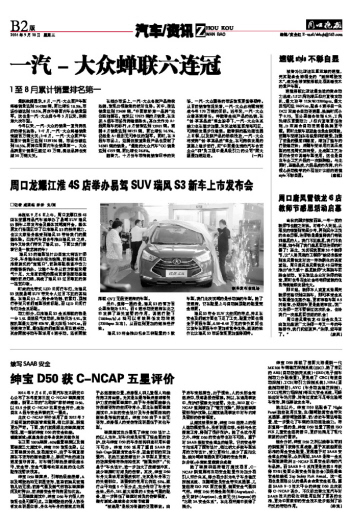 本报讯 9月6日上午,周口龙耀江淮4S店在宏源精品汽车城举办了易驾SUV瑞风S3新车上市发布会及媒体试驾测评会,媒体朋友们亲眼见证了江淮瑞风S3的独特魅力,也让大家亲身感受到瑞风S3带给我们的震撼体验。江淮汽车自去年推出瑞风S5之后,如今又给我们带来了瑞风S3,下面让我们看看它是一款怎样的车?