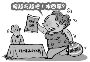日前,福清市江镜镇何女士反映,因轻信电视购物广告,她花1200元钱购买使用某减肥产品后,发现自己体重不减反增,她多次向对方提出退款要求,但却遭到对方的敷衍和拒绝。