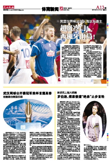 本报综合消息 男篮世界杯上美国与西班牙争夺冠军的场面无法实现了,因为西班牙爆冷出局了。北京时间9月11日,2014年男篮世界杯在西班牙结束了最后一场四分之一决赛,东道主西班牙队以52∶65不敌法国队,被挡在了四强之外。