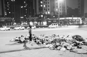 9月10日20时许,记者在文昌大道幸福花开小区安置A区门口的马路上看到,虽然大量垃圾已占据慢车道,但仍有居民将盛放垃圾的塑料袋丢弃在此(如图)。垃圾越来越多,逐渐向快车道蔓延。一位倾倒垃圾的居民告诉记者:“我们小区最近一段时间没有物业公司,垃圾越积越多,我们也知道将垃圾倾倒在马路上不好,但我们是没办法才出此下策的。”