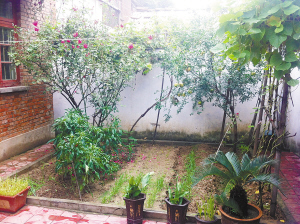 张明铎老人的家,小院干净整洁,院子里几米见方的土地上种植着一些花草和蔬菜,使得院子显得很别致。这院子里的花草蔬菜都是老人亲手侍弄的。听说记者要来采访,92岁的张明铎老人没有出门。由于下着小雨,老人一直在屋里休息。尽管已过耄耋之年,老人的精神状态依然很好,平时总是闲不下来,只是腿脚不是很好。这几年,老人的听力有点下降,“我平日里闲不下来,喜欢收拾一些东西,整理一下房间。虽然耳朵不如前几年,但还能听得见。孩子经常回来照顾我,比起以前打鬼子的日子,现在生活过得不错。”谈起现在的生活,老人沧桑的脸庞写满了慈祥。