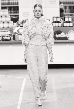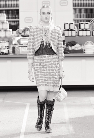 在香奈儿 2014年秋冬秀场上,一些粉嫩色彩的针织单品显得十分抢眼,“老佛爷”将针织衫变得像装饰画一样花哨。而这些针织品最大的亮点就是身上点缀的不同材质的立体装饰,丰富的细节令人眼花缭乱,使得原本Boring的针织服饰一下子鲜活起来。
