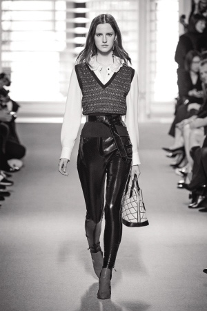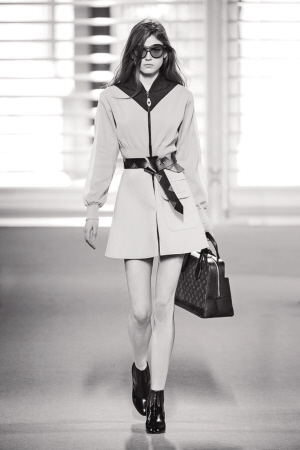 尼古拉·盖斯基埃入主路易威登后的第一季作品也选择了上世纪60年代后期风格作为切入点。尽管品牌宣称Nicolas的缪斯女神是夏洛特,但秋冬系列中那一款款拉链上衣、紧身针织衫、迷你裙、紧身裤,分明能从上世纪60年代的当红偶像伊迪塞奇威克、玛丽安等人的老照片中找到近似款式。