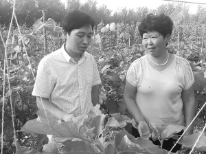 阳可在下基层工作中,针对党庄村、下口村村民农业生产中遇到的技术难题,把两个村作为川汇区农林局的科技示范村,并筛选了10户科技示范户,每户示范户辐射带动20户,涵盖了200多户村民,固定了一名高级农艺师为技术指导员,帮助村民科学种田(如图)。