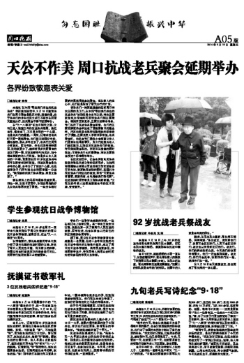 天公不作美 周口抗战老兵聚会延期举办