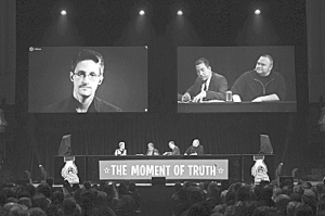 9月15日晚,新西兰第一大城市奥克兰市政厅礼堂,网络大亨、“盗版之王”金姆·多特康姆的“真相时刻”上演。先前在美国“棱镜门”中扮演关键角色的记者格伦·格林伍德出现在现场,爆料人爱德华·斯诺登、“维基揭秘”网站创始人朱利安·阿桑奇则通过网络视频“现身”,引得现场片片惊呼。