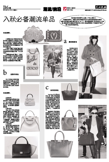 维多利亚·贝克汉姆在接受美国In Style时尚杂志采访时也表示,她热爱大包袋,尤其是那些设计简单,但看起来却十分优雅的大包袋,包袋的颜色最好看起来可以振奋人心。托特包是维多利亚最爱的包袋款式,因为它非常实用简单,所有东西都可以往里面放。看来想做辣妈,一款经典的托特包是绝不能少的。(郑少玲)