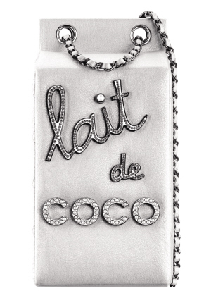 2.香奈儿这款“牛奶盒”链条包实在奢华无比,光泽的包面镶嵌着晶亮水钻和珍珠并有趣地写着“Coco牌牛奶”。