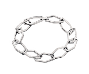 极简的几何图案,向来是摩登风格的代表。那么以极简线条构筑的锁链,在六角形的缠绕中,最大限度地裸露出肌肤底色,几何图形与裸露肌肤之间的视觉冲击之间,自然会呈现一种裸露的性感。