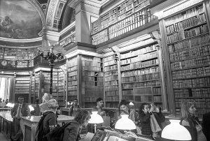 9月21日,游客在法国巴黎的国民议会图书馆参观。