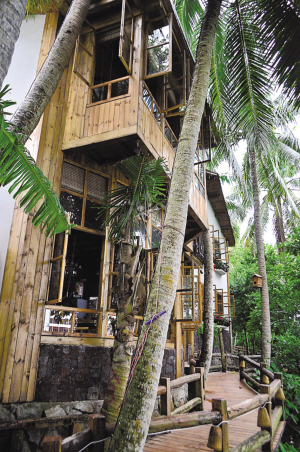 当然,喝咖啡还可以到博鳌小镇上,有着粗犷石墙的“老房子”咖啡馆,掩映在绿荫下深邃而浓郁的色调,海南本土的民间元素不经意地散布在各个角落,留住了远去的村烟,浸透了本土味道。一杯来自南洋的“歌碧黑”(咖啡),就为每一位来客呈现一个散发着余温的老博鳌、老琼海、老南洋。