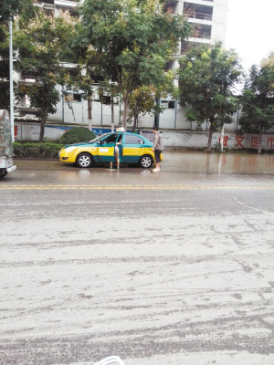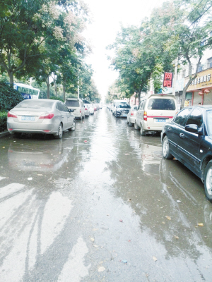 昨日6时许,记者在现场看到,这里的积水情况已经非常严重,黄河路一侧的慢车道几乎不能通车,积水甚至漫到停在慢车道上的一些底盘较低的车辆里面,骑车的人和机动车都只能挤在快车道上。一名出租车司机忙着把车从水里弄出来,“我昨天晚上跑完夜车就把车停在路口附近的慢车道上了,谁知道今天早上一打开车门,车里都是水,真是气人。”靠近跑水位置的几家商铺由于地势较低,屋里的东西都被泡在了水里。虽然一些店里的工作人员努力往外扫水,但大量的自来水仍不停地从近处一个自来水井口处喷涌出来,他们的努力明显收效不显。“这里的水漏了3个多小时了,水流得太快,不一会就淹没了路面。附近下水道排水不及,反而开始往外面喷水了。”一名环卫工人说。