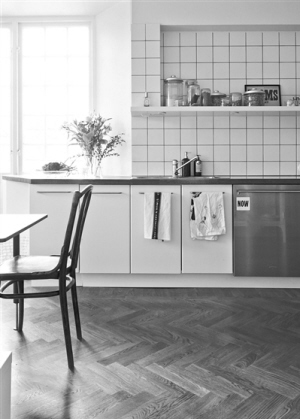 40岁的女人已经修炼得很有气场了,优雅,得体,喜欢品质。这个年纪的女人的厨房也是简单大气的,白色的瓷砖和白色的橱柜,让厨房干净明了,没有过多的装饰。但拼花实木地板却暴露了主人的气质,低调中不失品质,简约却不简单。巧妙地将厨房里使用的食物作为装饰,摆满了橱柜上面的架子,白的红的就是最好的厨房颜色。而窗边的花和蔬菜,还有实木餐桌和餐椅,在阳光下让整个厨房优雅起来。