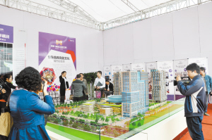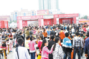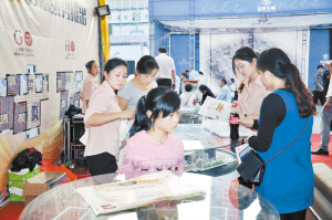 展会上,“诗意江南杯”周口市青少年书画大赛现场,上千名学生及家长参与。