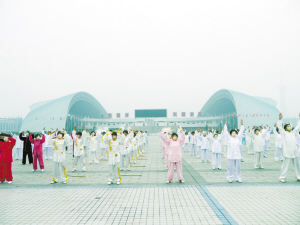昨天上午,2014年周口市“庆国庆”健身气功站点交流展演在市体育中心举行。来自周口市中心城区各健身气功辅导站的36个代表队,近300名健身气功爱好者通过交流展演,喜迎即将到来的国庆节。晚报记者 宋风 摄