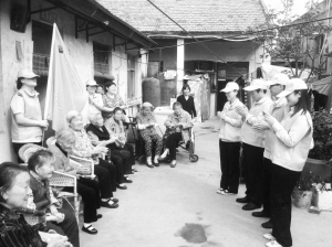 当日9时30分,志愿者提着米、面、油来到夕阳红老年公寓。看到志愿者到来,老人们热情地迎了上去,并紧紧握着志愿者的手。“快到重阳节了,我们过来看看你们还有什么需要,您老的腿怎么样了?”“我这腿好多了,没想到你们还挂念着我。”“尊敬老人是中华民族的传统美德,这是我们应该做的。”志愿者和老人你一言我一语唠起了家常。随后,志愿者还给老人演唱了歌曲,老人们报以热烈掌声。胡维文老太感慨地说:“这儿好久没有这么热闹了。你们的心眼真好!”