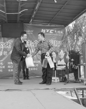 当日上午,记者随同周口华耀城爱心人士来到淮阳县社会福利院。此时,福利院的60多位老人早已搬着小凳子坐到早已搭建好的舞台前等待文艺会演开始。文艺会演开始后,豫剧《小二黑结婚》《穆桂英挂帅》,越调《收姜维》等让老人们着实过了一把戏瘾。