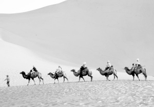目光向驼队逼近,驼队向金沙逼近,脚步向太阳逼近。