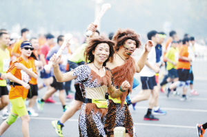 2014年北京马拉松赛落下帷幕,一些长跑爱好者的个性服饰成为比赛中独特的风景。