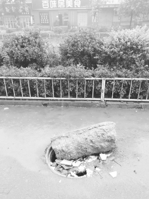 在市政公用基础设施这个话题中,有关窨井盖的话题,可谓是老生常谈,而庆丰路上的窨井盖更需要提一提。10月20日,记者沿庆丰路北侧的非机动车道一路西行,看到窨井盖规格不一、凸凹不平,多处出现不同程度的破损。由于天空下着雨,凸出地面的窨井盖旁存满积水,市民从此经过时,不但要躲避路面的积水、路边停靠的车辆,还要绕开凸凹平不平的窨井盖。在奥兰天和小区西侧,有一个破损严重的窨井盖被人用水泥块替代。在南侧的非机动车道上,也有一个窨井盖缺失,不断有水从井里溢出。为避免行人不慎落入井中,附近商户在窨井里插上了树枝。