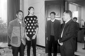 本报讯 10月20日,在今年10月13日落幕的女排世锦赛中,入围世界女排最佳阵容,被誉为“小郎平”的中国女排最佳得分球员、第一主攻手朱婷回到家乡郸城,受到当地县委、县政府领导的亲切接见(如图)。