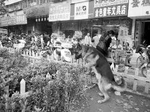在闫庄小学门口东侧的人行道上,一条一米多长的大狗突然从绿化带中蹿起来,朝着经过此处的学生一阵狂吠。由于被绳子拴着,大狗才没有跑出绿化带。一名低年级男孩没有意识到潜在的危险,朝着大狗走去。随后,男孩被旁边一名中年妇女拉住,远离大狗。旁边一位学生家长告诉记者:“这个男孩算是比较‘勇敢’的,你看其他孩子从这里经过时,都会绕开一段距离。”这条狗是谁拴在这里的,拴了多久,这位家长也不知情。