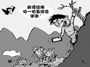 微信圈里的男女老少,有时像诗人,有时像哲学家,有时又像高僧,易喜易怒易淡定,对外部世界极其敏感,见一张纸,一块石,一堆垃圾,都会停下来拍一下思考人生,或哀戚或喜悦或豁然开朗,举凡生活中的吃喝拉撒,眼中景,心中情,家事国事天下事,都是要晒的,遇到被困山中这样人生中的重大事件,不晒,能行吗?但晒的结果是被网友骂神经病,要他赔出警费。