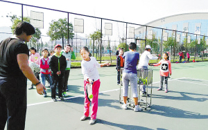 摄影活动结束后,小记者们又来到市体育中心网球场,进行网球试打训练。在教练员的指导下,小记者们学会了怎么握拍、击球、移步,掌握了网球运动的一些基本动作要领,孩子们玩得乐翻了天。